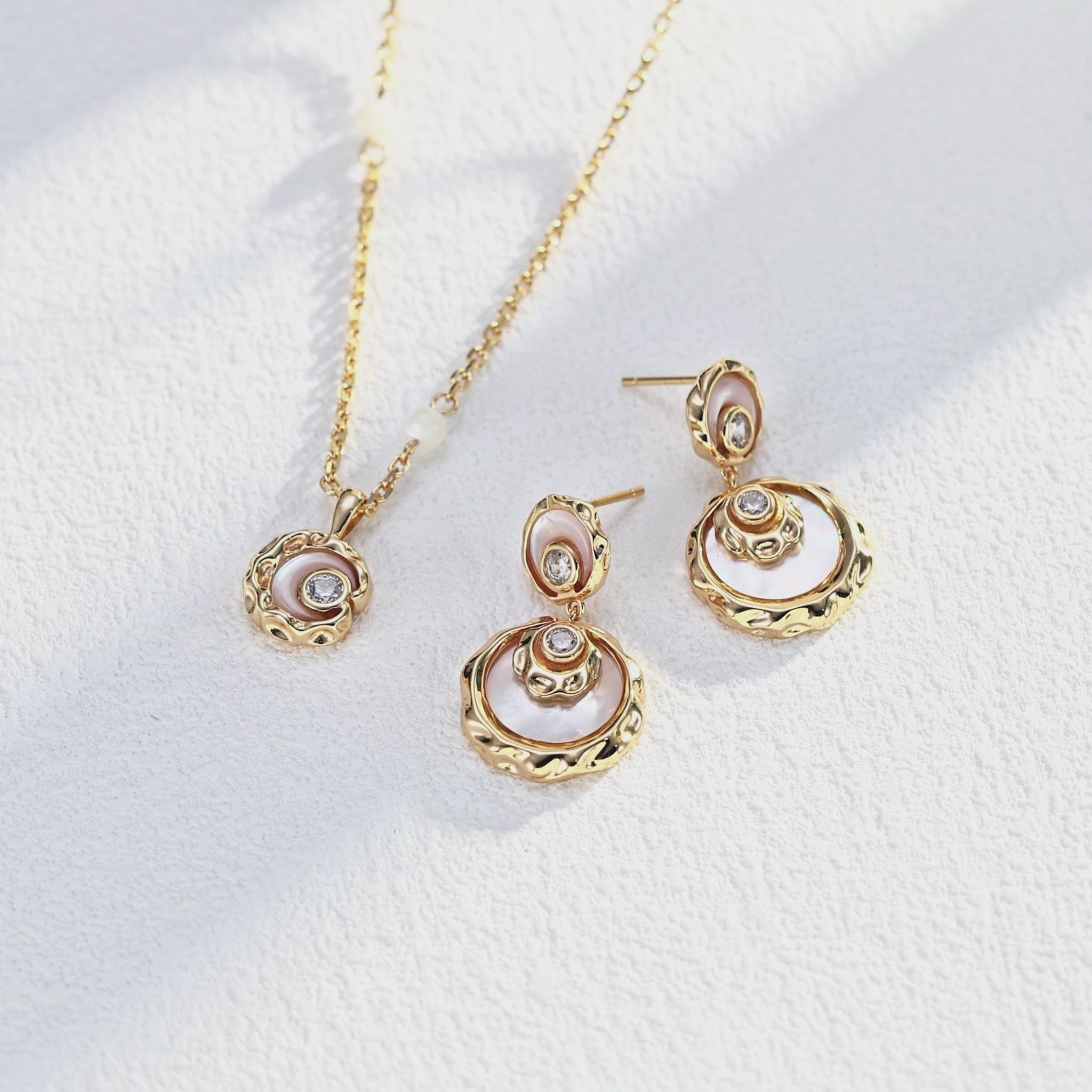 Diese Ohrstecker bestehen aus echtem 925 Sterlingsilber und vereinen schimmerndes Perlmutt mit funkelnden Kristallen zu einer harmonischen Komposition aus Bewegung und Glanz.