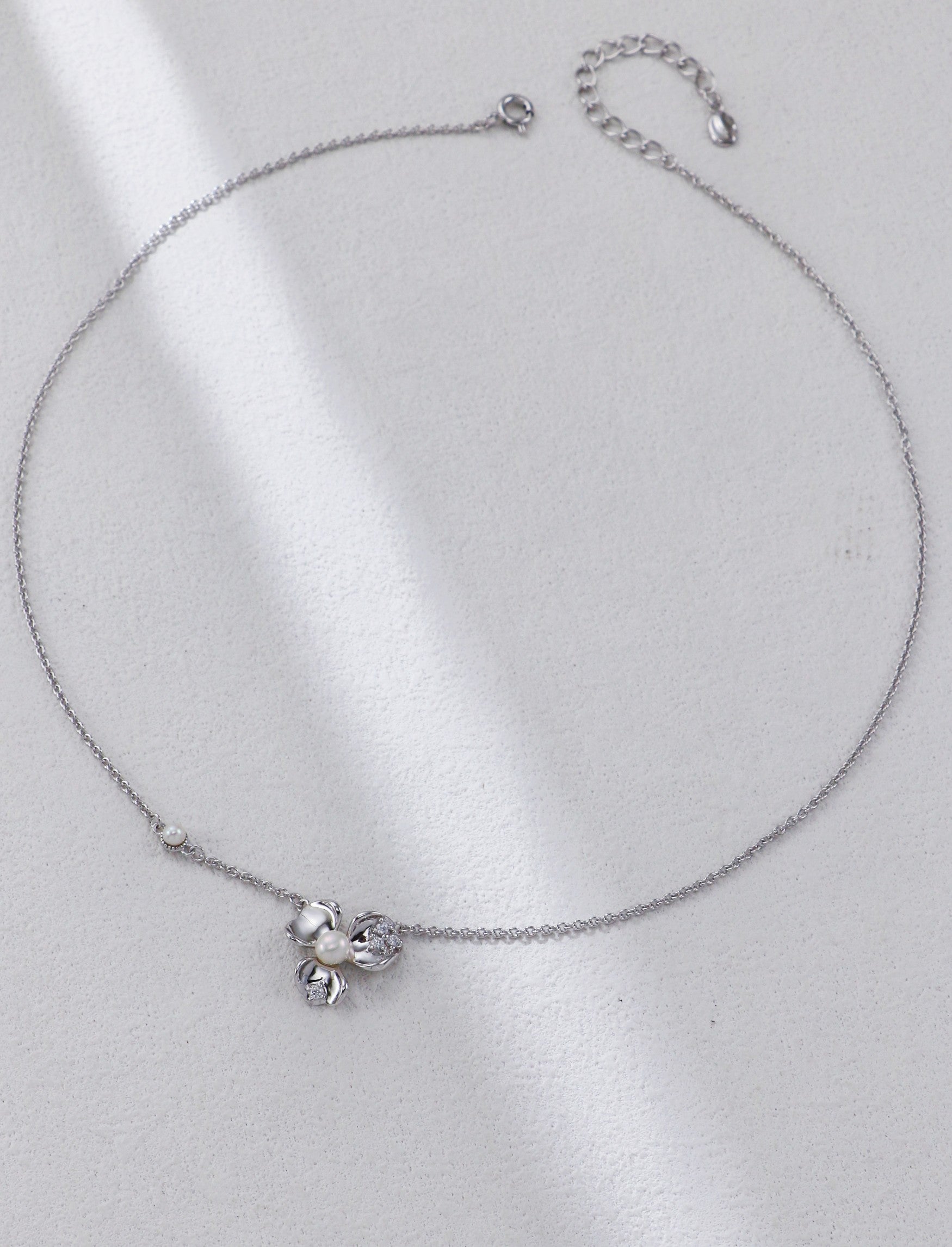 S925 Halskette mit Blütenanhänger und Zierperlen
