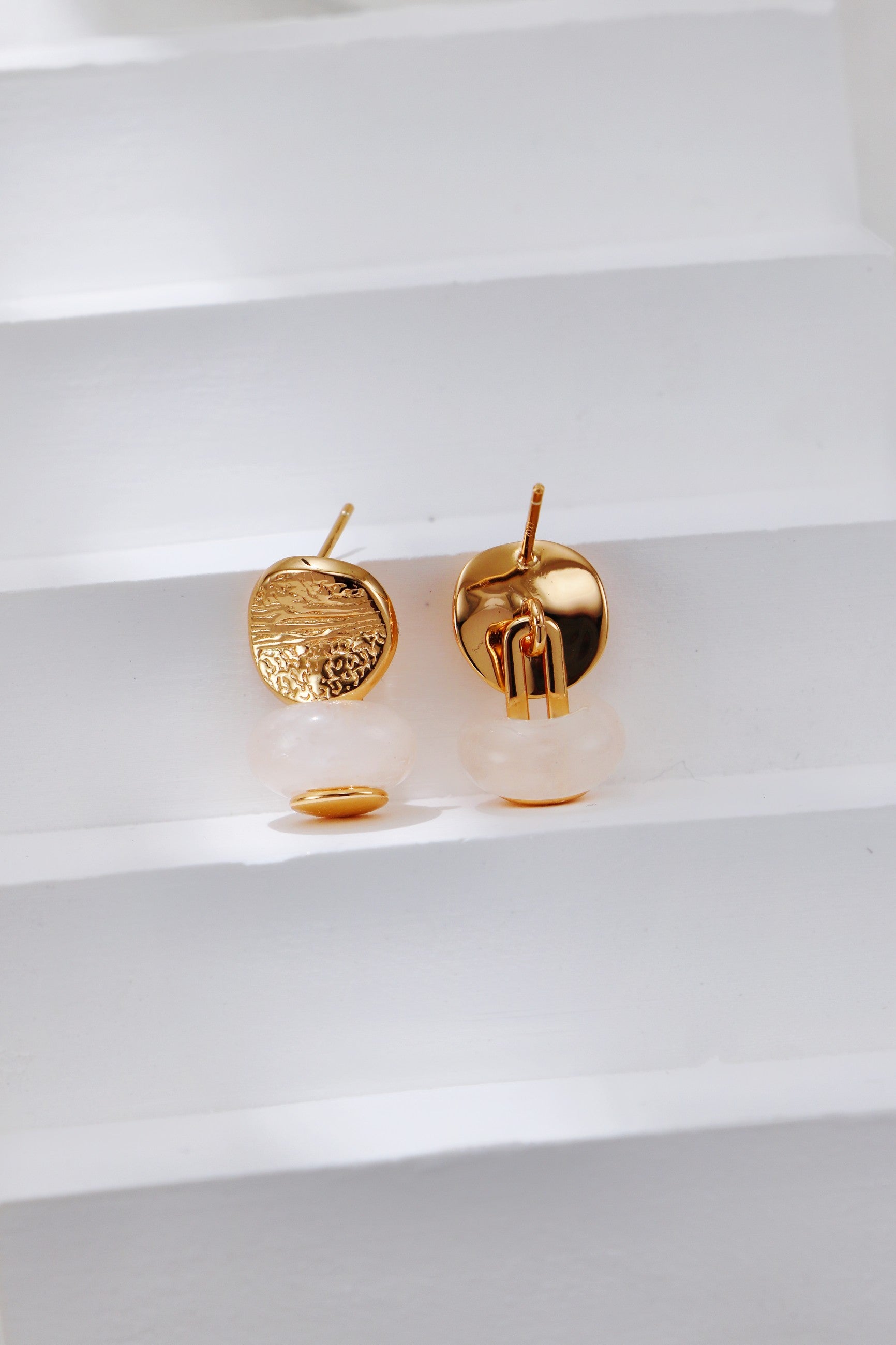 Diese stilvollen Ohrstecker bestehen aus hochwertigem 925er Silber (gestempelt) und sind wahlweise in einer silberfarbenen oder mit einer goldenem Finish Variante erhältlich. Das strukturierte Oberteil verleiht dem Schmuckstück eine besondere Oberfläche mit modernem, handwerklich inspiriertem Design.