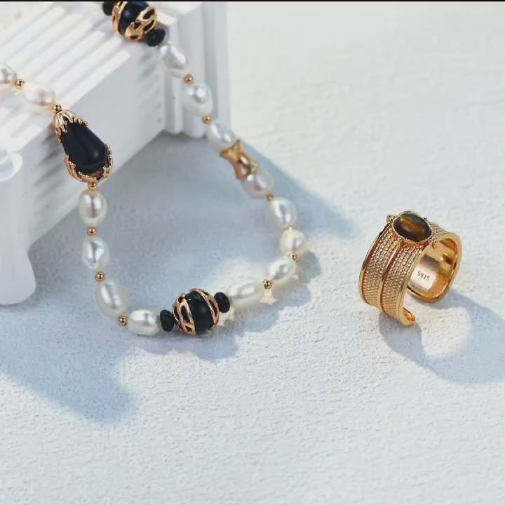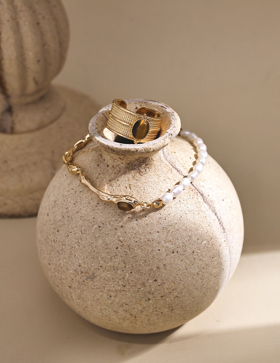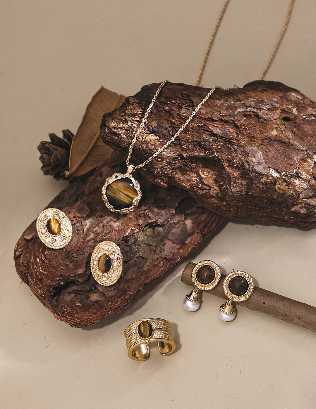 Ein Ring mit Charakter – gefertigt aus echtem 925er Silber, veredelt in antikgoldenem Finish und gekrönt von einem kraftvollen Tigerauge. Der offene, fein strukturierte Bandring lässt sich individuell anpassen und liegt angenehm an jedem Finger. Das Tigerauge ist seit jeher bekannt für seine schützende und stärkende Wirkung – ein Stein für Mutige und Entschlossene.