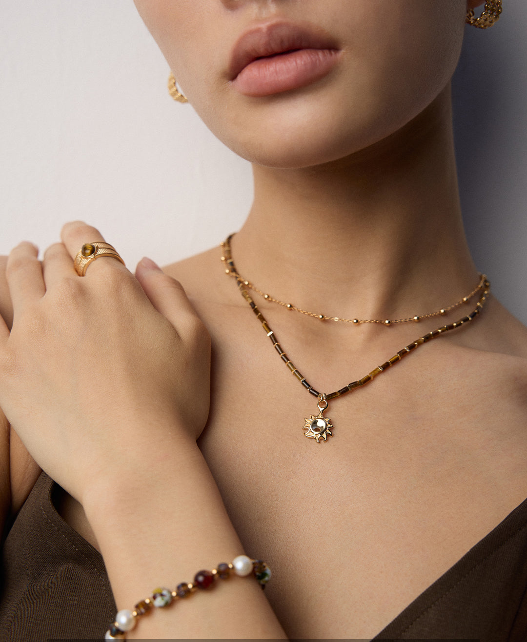 - Da es sich um ein Schmuckstück mit Vergoldungs-Finish handelt, kann es zu leichten Abweichungen in Farbe und Struktur kommen.